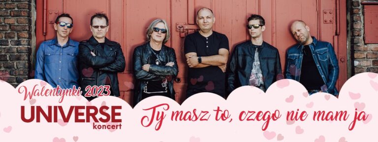 Na niezapomniany koncert „Ty masz to, czego nie mam ja” do Teatru Miejskiego zapraszamy nie tylko zakochanych!   Wszyscy pamiętamy największe przeboje UNIVERSE: „Tacy byliśmy”, „Tyle chciałem Ci dać” (duet z Beatą Kozidrak), „W perły zmienić deszcz”, „Wołanie przez ciszę”, „Deszczowa nieznajoma”, „Mr Lennon”, „Nie wiem czy to miłość”, „Głupia Żaba” czy „Ciągle szukam drogi”.…