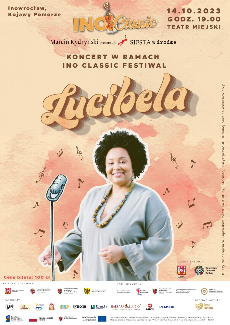 Tegoroczny INO CLASSIC Festiwal zakończy 14 października wydarzenie „Marcin Kydryński prezentuje: SIESTA w drodze”. Bohaterką wieczoru będzie Lucibela, wyśmienita wokalistka z Republiki Zielonego Przylądka, której ciepło głosu, spokój i pozytywna energia zachwycą każdego słuchacza. Bilety na koncert dostępne są w cenie 100 zł.