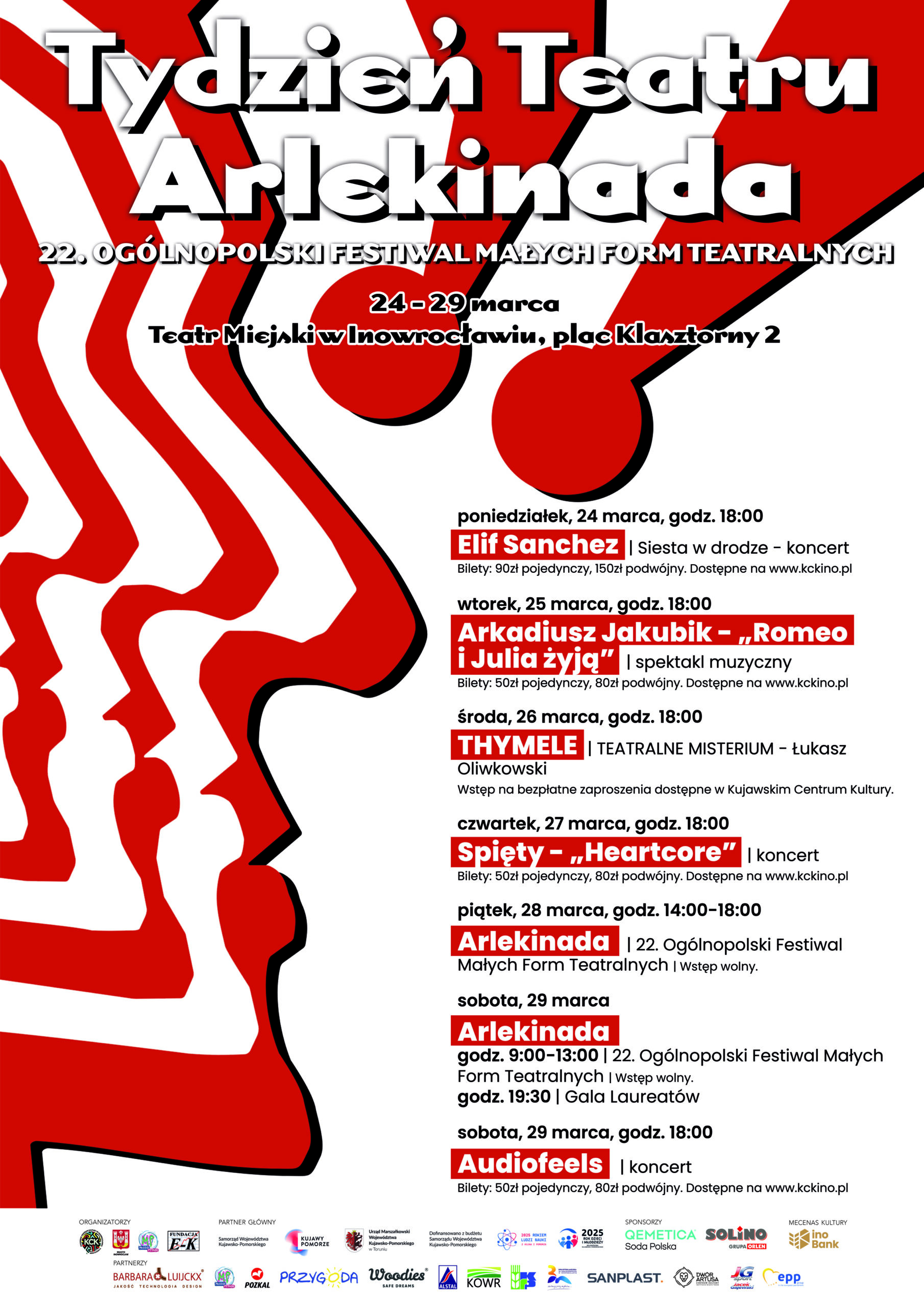 Nieodłącznym wydarzeniem Tygodnia Teatru będzie – organizowany po raz dwudziesty drugi – Ogólnopolski Festiwal Małych Form Teatralnych „Arlekinada”, promujący młode talenty. 28 marca (godz. 14.00-18.00) i 29 marca (godz. 9.00-13.00) na deskach inowrocławskiego teatru zaprezentują się młodzieżowe zespoły teatralne małych form z całej Polski, a ich prezentacje sceniczne oceniać będą profesjonaliści – JURY w składzie: Maria Pakulnis, Łukasz Maciejewski i Łukasz Wudarski. Swoje nagrody przyznają też Jury młodzieżowe. Wstęp na przegląd spektakli jest wolny.
