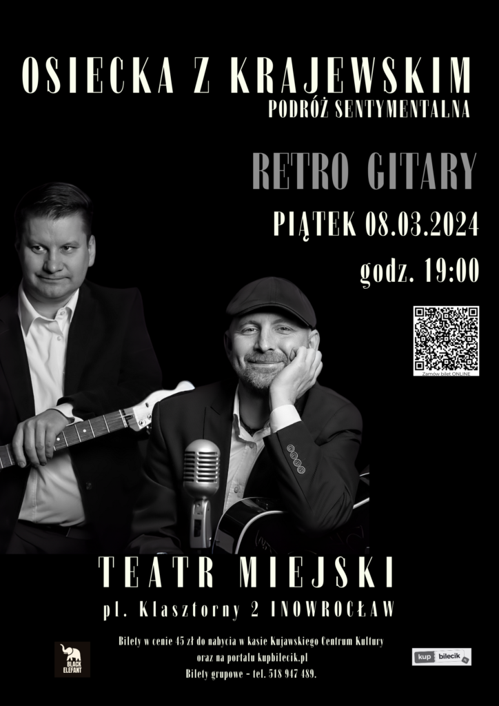 Podczas koncertu usłyszycie Państwo utwory mniej znane, ale także największe przeboje tej pary autorskiej. Wszystkie utwory wykonywane na koncercie uwiecznione zostały na płycie OSIECKA Z KRAJEWSKIM zespołu Retro Gitary, która swoją premierę miała w październiku 2021.