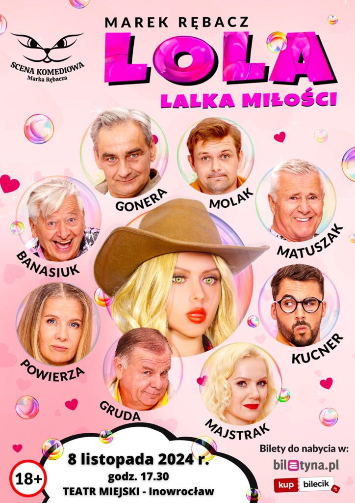 „Lola” to najnowsza komedia Marka Rębacza, autora wielu teatralnych przebojów (Dwie morgi utrapienia czyli zróbmy sobie wnuka, Atrakcyjny pozna panią, Wieruszka, Ciemno, Jaskiniowcy, Basia sama w domu i inne). Ta nowa produkcja niesie jeszcze jeden zaskakujący i zupełnie nowy w teatrze element: jest eksperymentalnym połączeniem dwóch scenicznych form – spektaklu i standupu. „Lola” jest też satyrycznym rozważaniem o skrywanych marzeniach, seksualnych pragnieniach, dewiacjach, ludzkiej moralności i jej granicach (jeśli te w ogóle istnieją)…